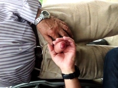 Old men swallows straight cum in car