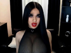 Big Tits Shemale Masturbate her Big Cock